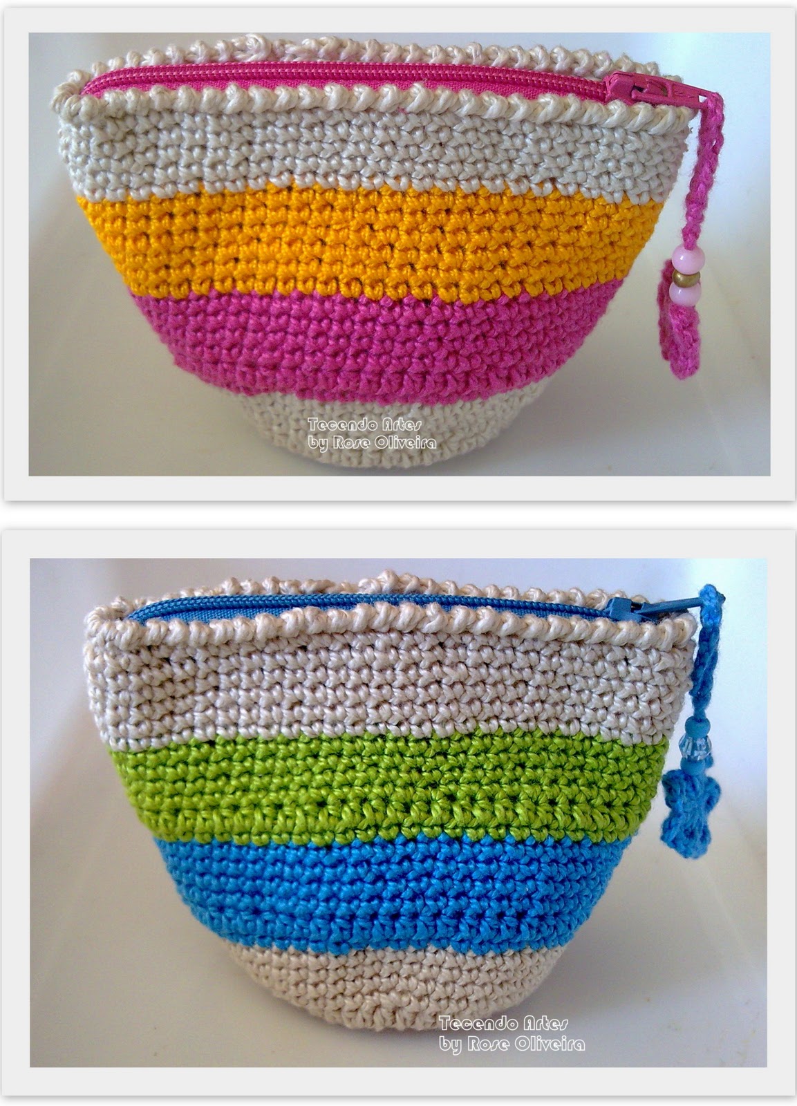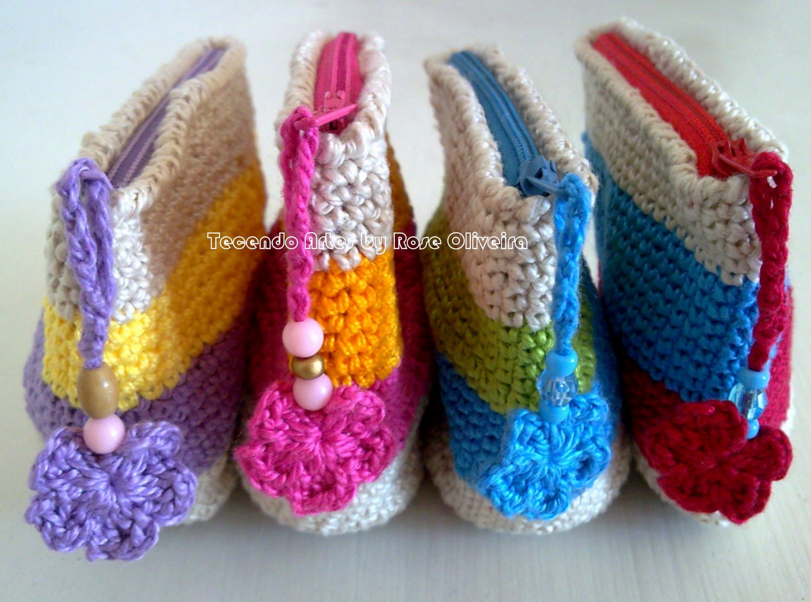 Estas são algumas das bolsinhas fofas que falei no post anterior, faltam outras (estão esperando pelo zíper, a parte mais chata), rs. fiz sem receita mesmo, surgiu a inspiração de fazer algo mais colorido, com a cara do verão, então depois de terminar uma, as outras fluíram fácil.