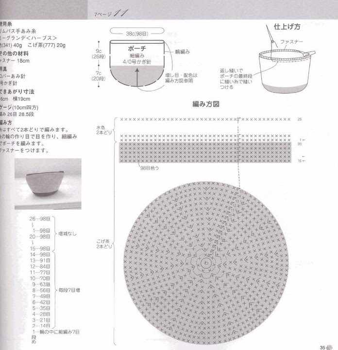 Comecei pelo fundo em carreiras de círculos com aumentos de pontos