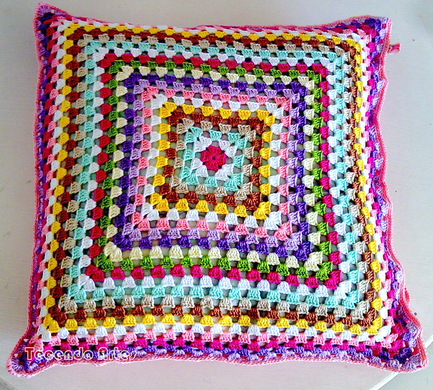 Aqui ela já guardando a almofada (uma das) que estou fazendo...