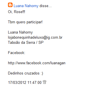 Gostei de ver o sucesso dos sorteios aqui no blog, amei!
