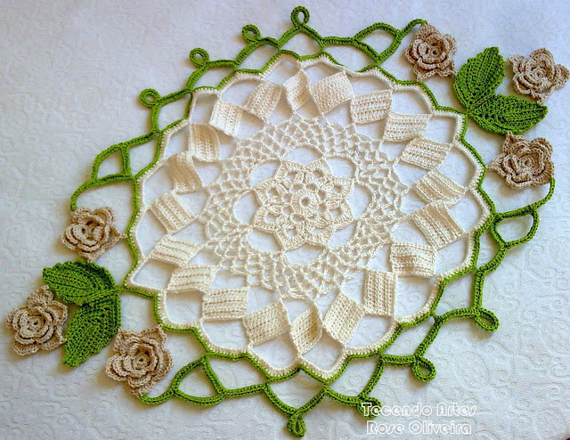 Assim juntei em uma só peça três coisas que amo, crochê, ponto cruz e tecidinhos!