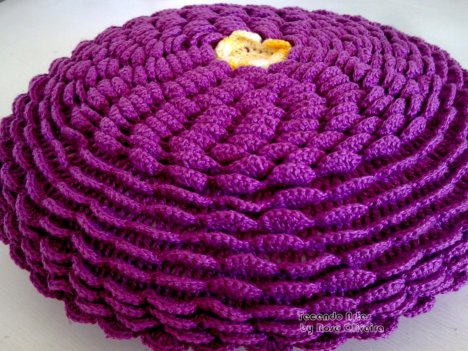Finalmente consegui terminar a almofada roxa.