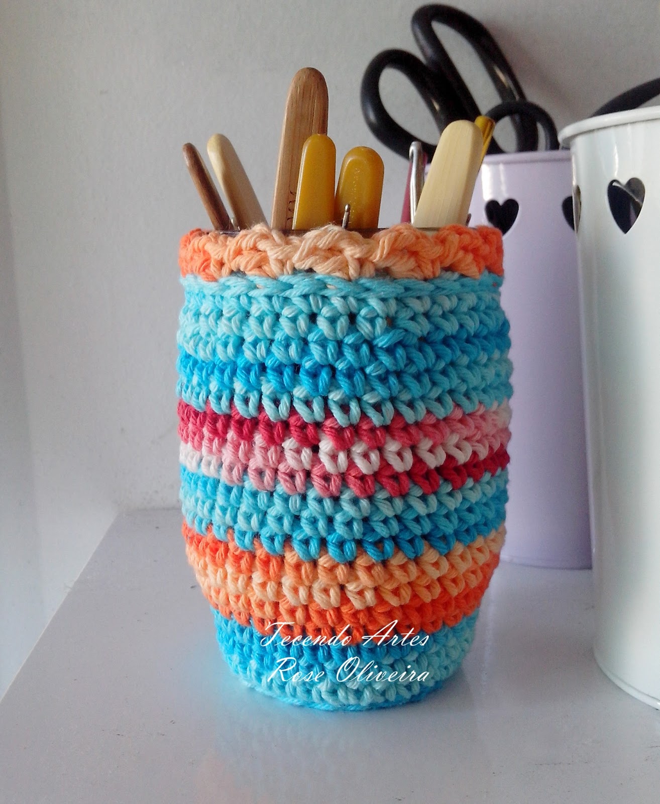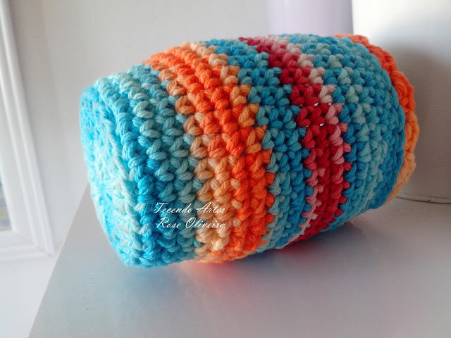 Comecei com ponto baixo e depois fui intercalando ptos baixos e ponto meio altos pegando por trás. No acabamento usei ponto caranguejo.