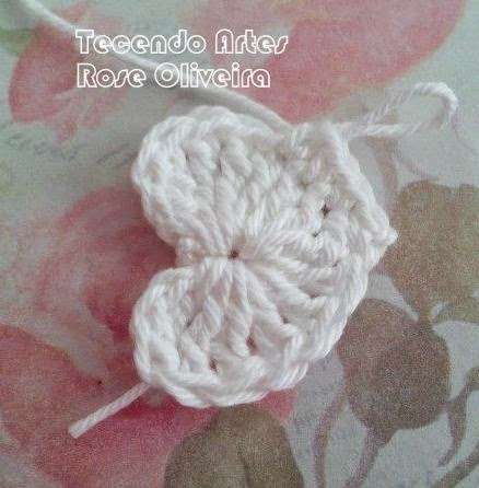 Fazendo assim, você chega ao meio do coração...agora repita o processo, faça 3 ponto altos, 3 ponto altos duplos e 3 correntes.