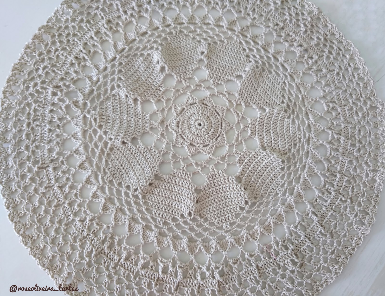 Fiz essa peça linda usando fio barroco cru com brilho prateado.